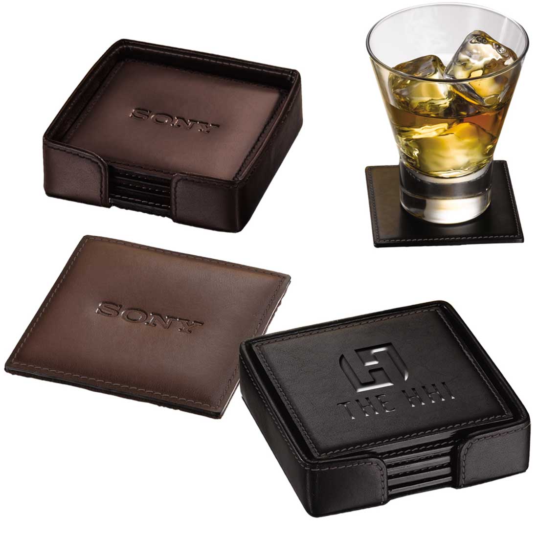 - Includes 4 individually debossed or imprinted coasters