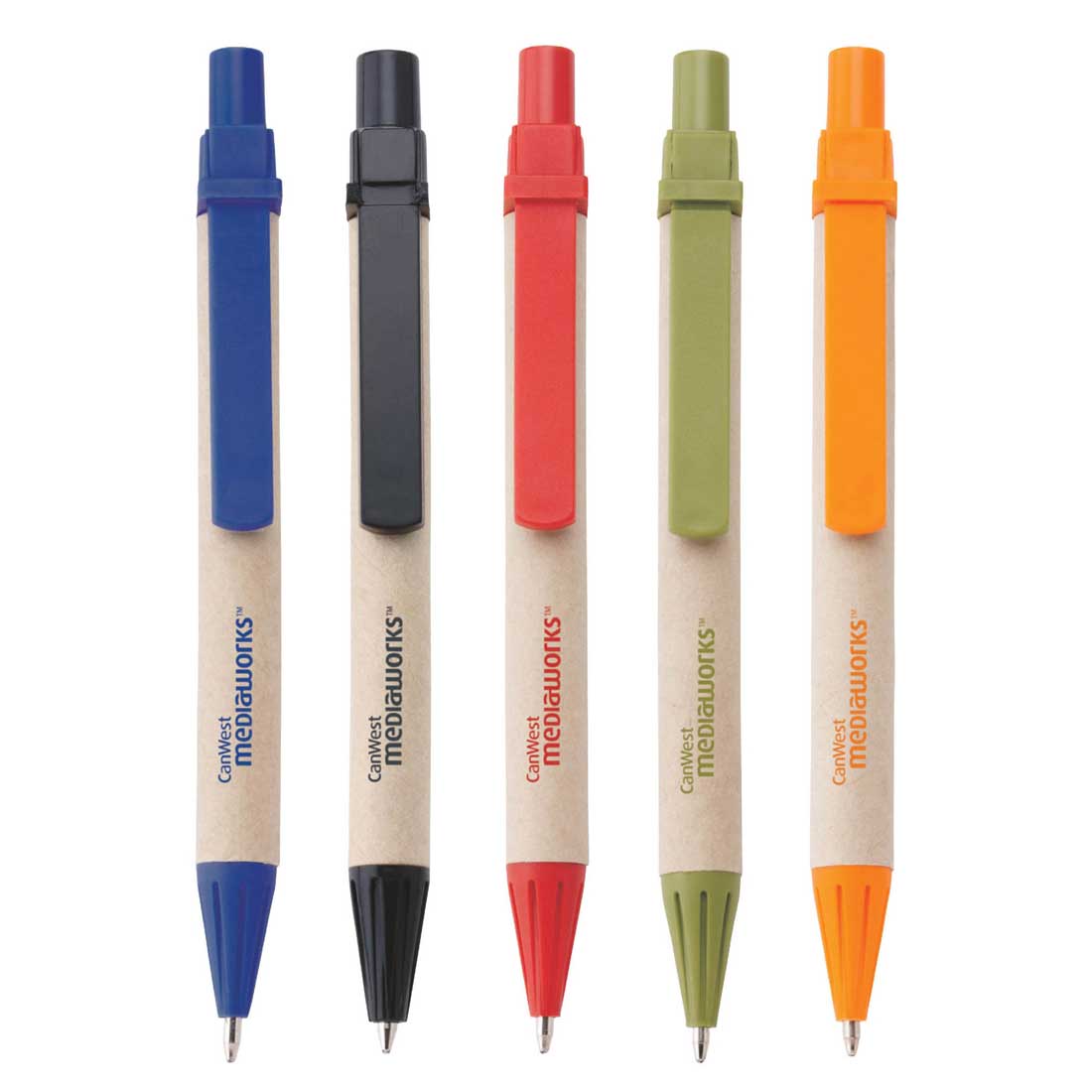 - Recycled symbol imprinted on each pen in the upper barrel (opposite of the clip)